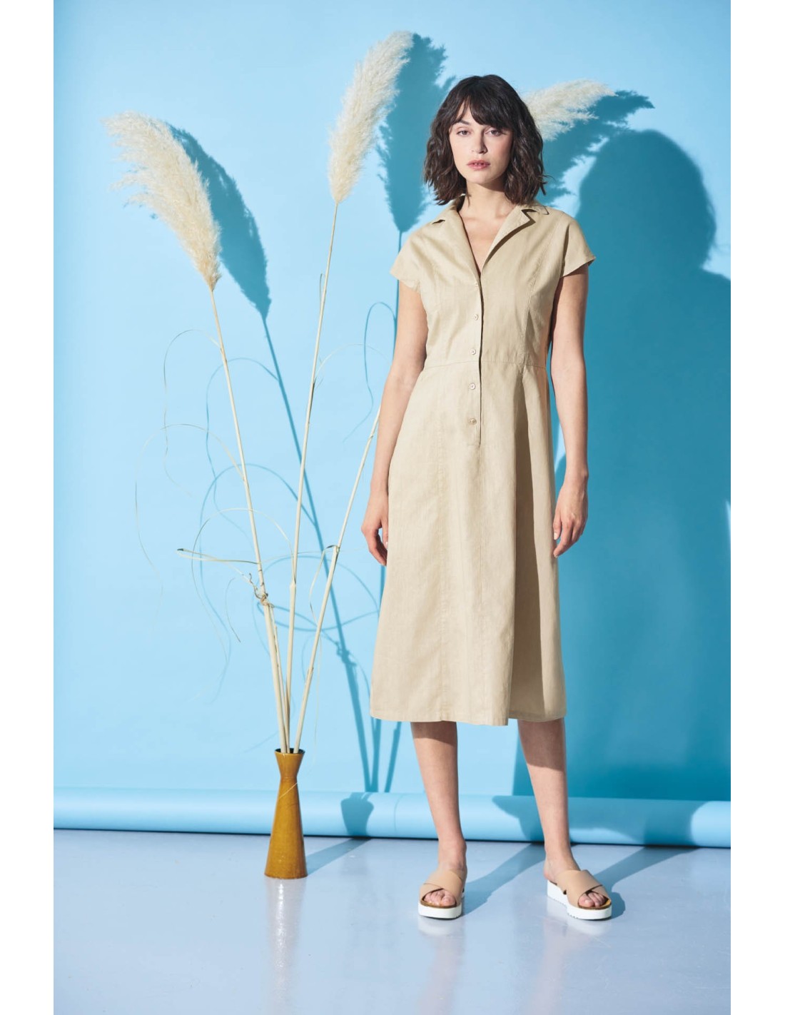 Dieses elegante DH146-Kleid, das in Hanf- und Bio-Baumwolle entwickelt wurde, zeichnet sich durch den normalen Schnitt und den zeitlosen Stil aus. Hergestellt aus hochwertigem Gewebe, verfügt es über ein raffiniertes Revers-Kragen und ein PERL-Pearl-Knöpfen, die einen Hauch von Raffinesse hinzufügen.