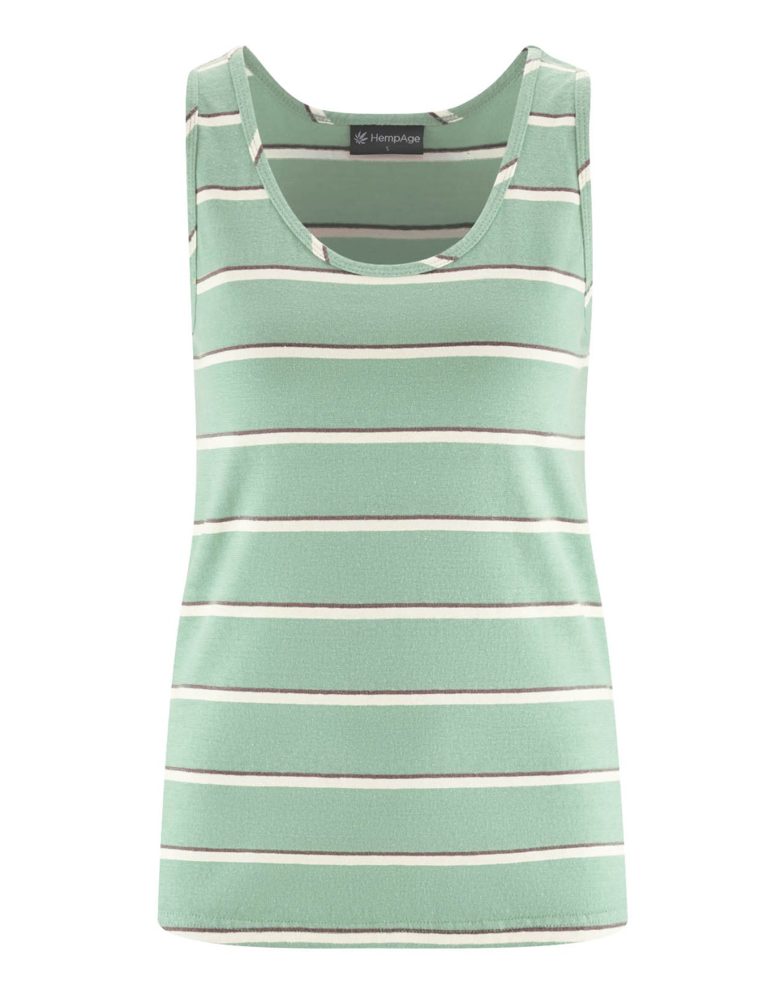 Bringen Sie einen Hauch von Frische in Ihren Schrank mit diesem gestreiften Damen Tanktop, aus weichem Jersey Misch Hanf und Bio-Baumwolle.