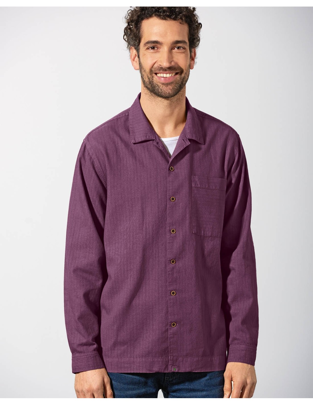 Treat yourself to a touch of stylish comfort with this shirt, made in hemp and organic cotton. Its relaxed cut ensures optimal freedom of movement and comfort throughout the day. Realized in quality woven fabric, this shirt has a soft scratch pattern that adds a sophisticated note to your outfit. Coconut buttons bring a natural and original touch, while the flat collar and adjustable cuffs allow a custom fit.