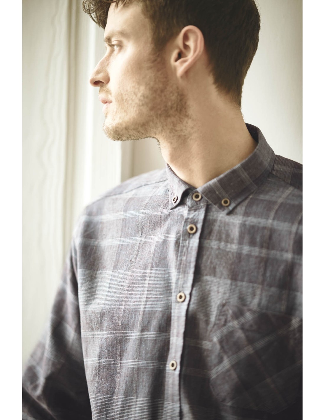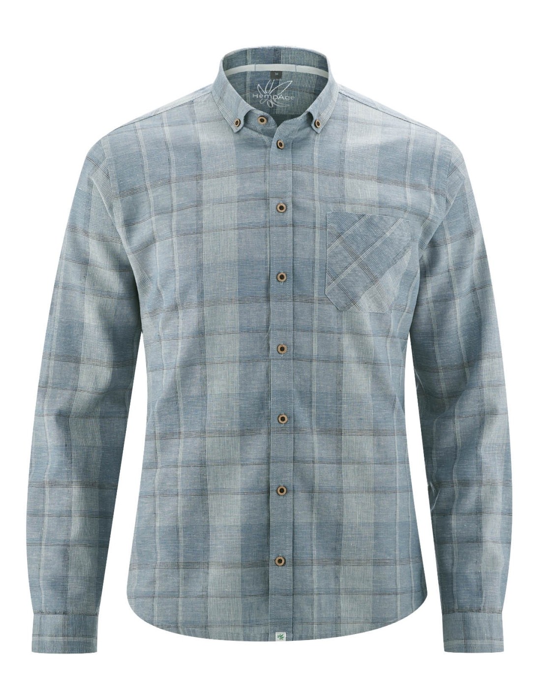 Raise your style with this long-sleeved shirt in hemp and organic cotton. Designed with an adjusted cut, it offers a modern and refined fit. The woven fabric has a classic plaid pattern, perfect for a timeless look. The buttonhole is complemented by coconut buttons, adding a natural and elegant touch. Featuring a practical chest pocket and contrasting and adjustable double cuffs, this shirt is both functional and sophisticated. The decorative seams inside the pass bring a neat and distinctive finish.