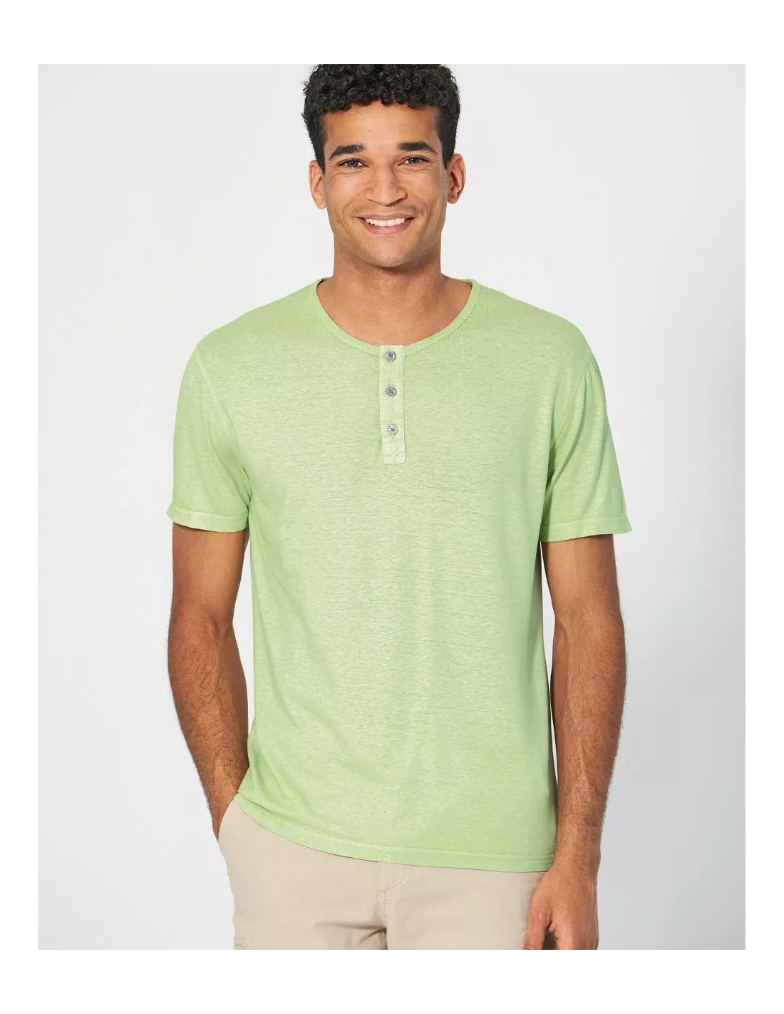 Short sleeve t-shirt Buttoned neck - HempAge
