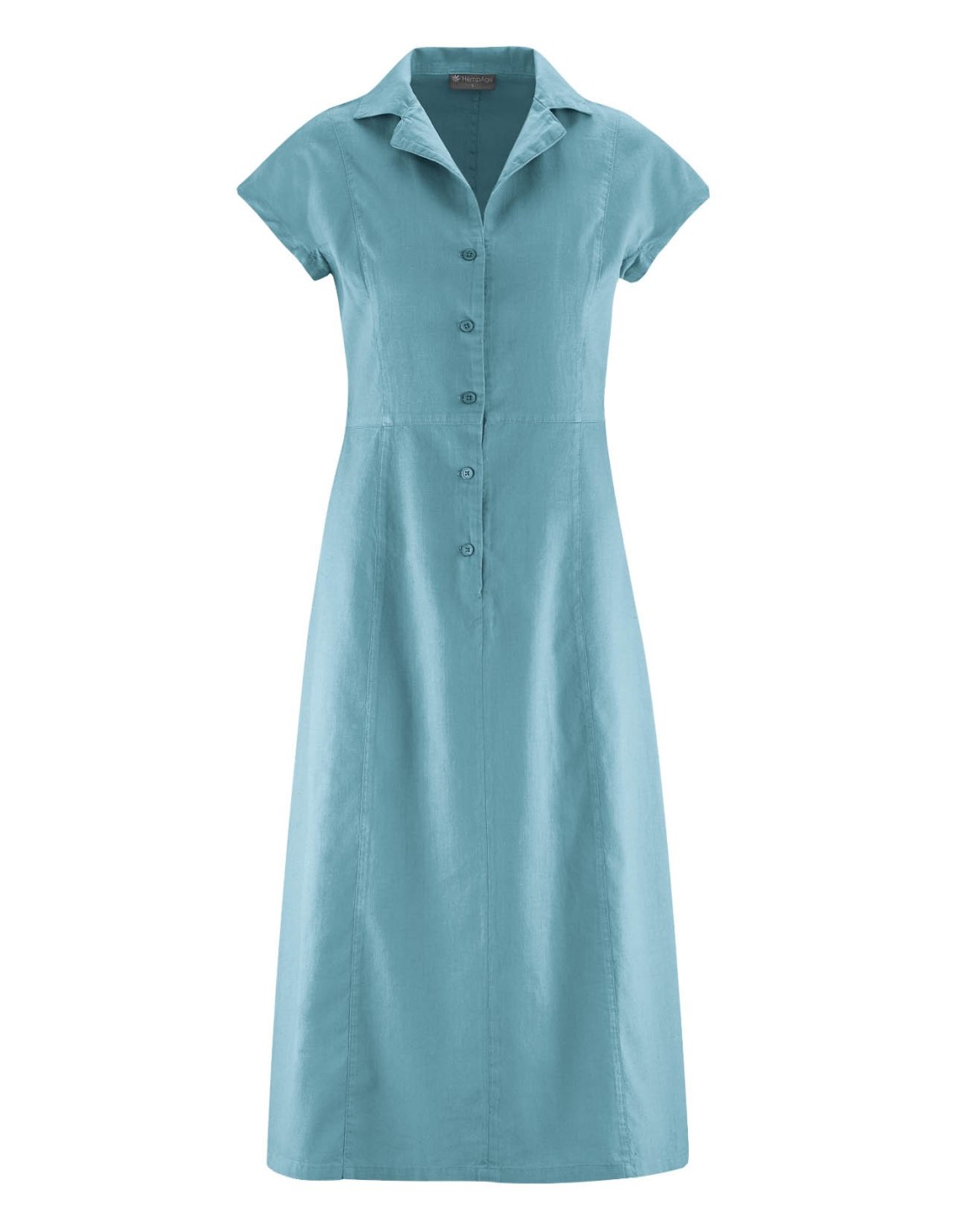 This elegant DH146 dress, designed in hemp and organic cotton, is distinguished by its normal cut and timeless style. Made of quality woven fabric, it features a refined lapel collar and mother-of-pearl buttons that add a touch of sophistication.