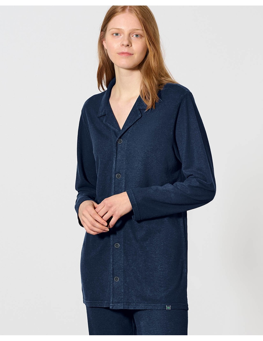 This pajamas shirt combines elegance and comfort with its normal cut and its brushed jersey fabric of 200 g / m². Made in hemp and organic cotton, it ensures a nice softness on the skin.