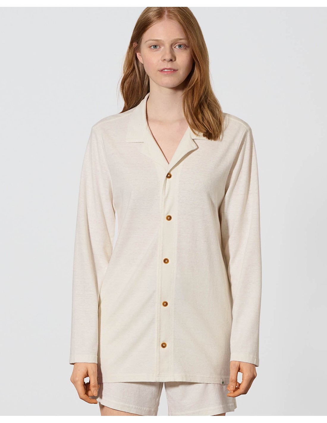 This pajamas shirt combines elegance and comfort with its normal cut and its brushed jersey fabric of 200 g / m². Made in hemp and organic cotton, it ensures a nice softness on the skin.