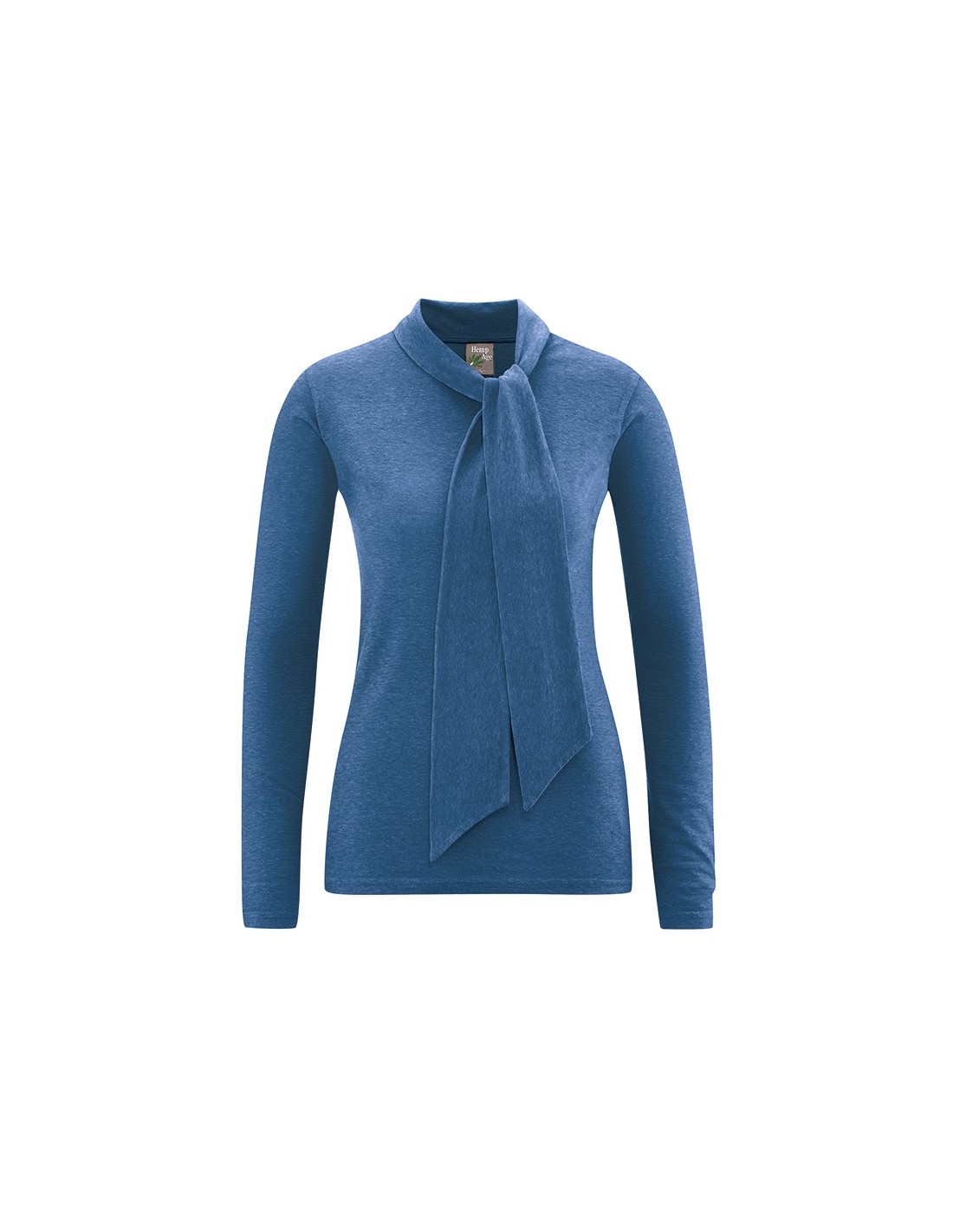 Made in soft jersey, it stands out for its neck tie collar with a versatile loop, allowing easy customization of style. Its breathable material ensures optimal comfort throughout the day, while maintaining a chic and neat look.