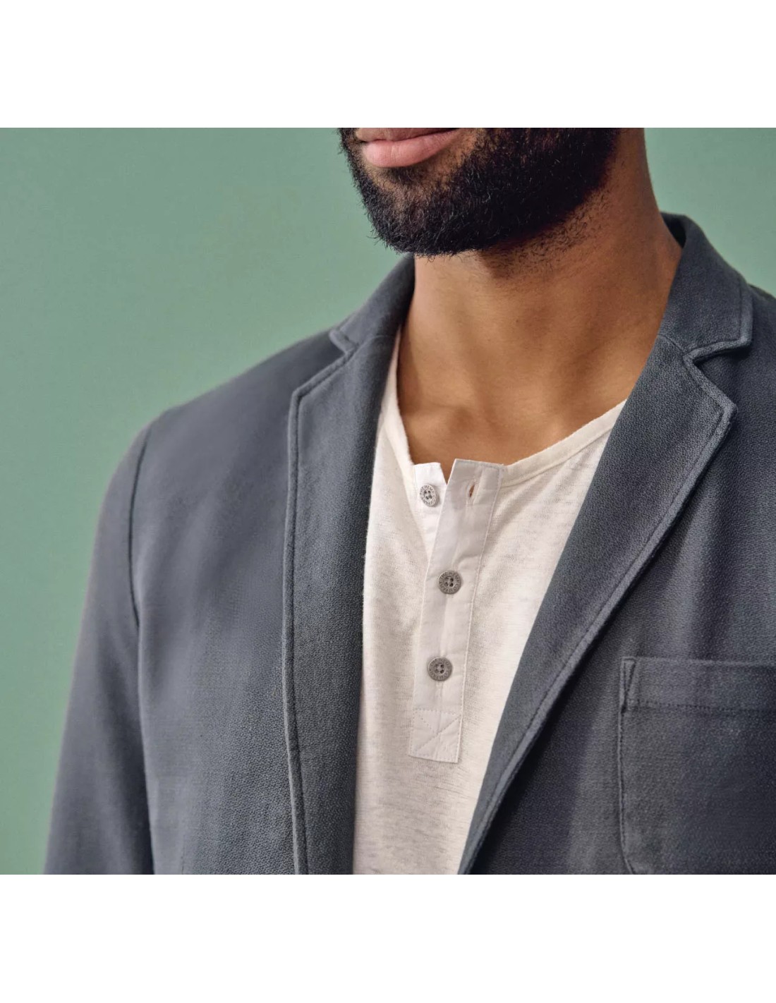 It has a practical chest pocket and patch pockets at the front for increased functionality. The stone buttons add a refined and modern finish to the whole. Ideal for completing your outfits with an eco-friendly elegance note, this jacket is a perfect choice for combining style and durability.