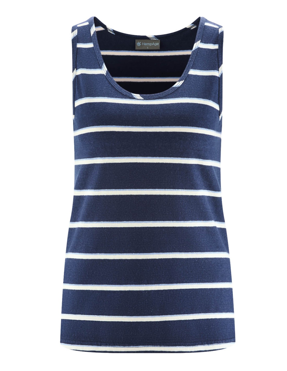 Bring a touch of freshness to your wardrobe with this striped woman's tank top, made of soft jersey mixing hemp and organic cotton.
