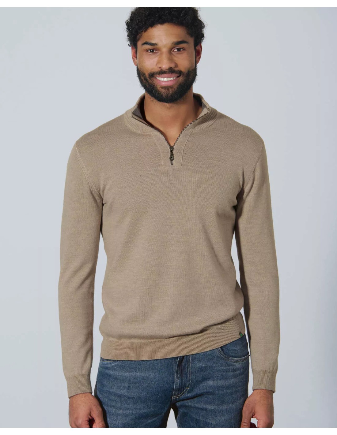 The Troyer sweater is a versatile and functional piece, ideal for fresh days. Featuring a nickel-free metal zipper, this model offers an adjustable collar that combines practicality and style. Its normal cut ensures optimal comfort, while the knitted fabric of 385 gr / m² provides pleasant heat.