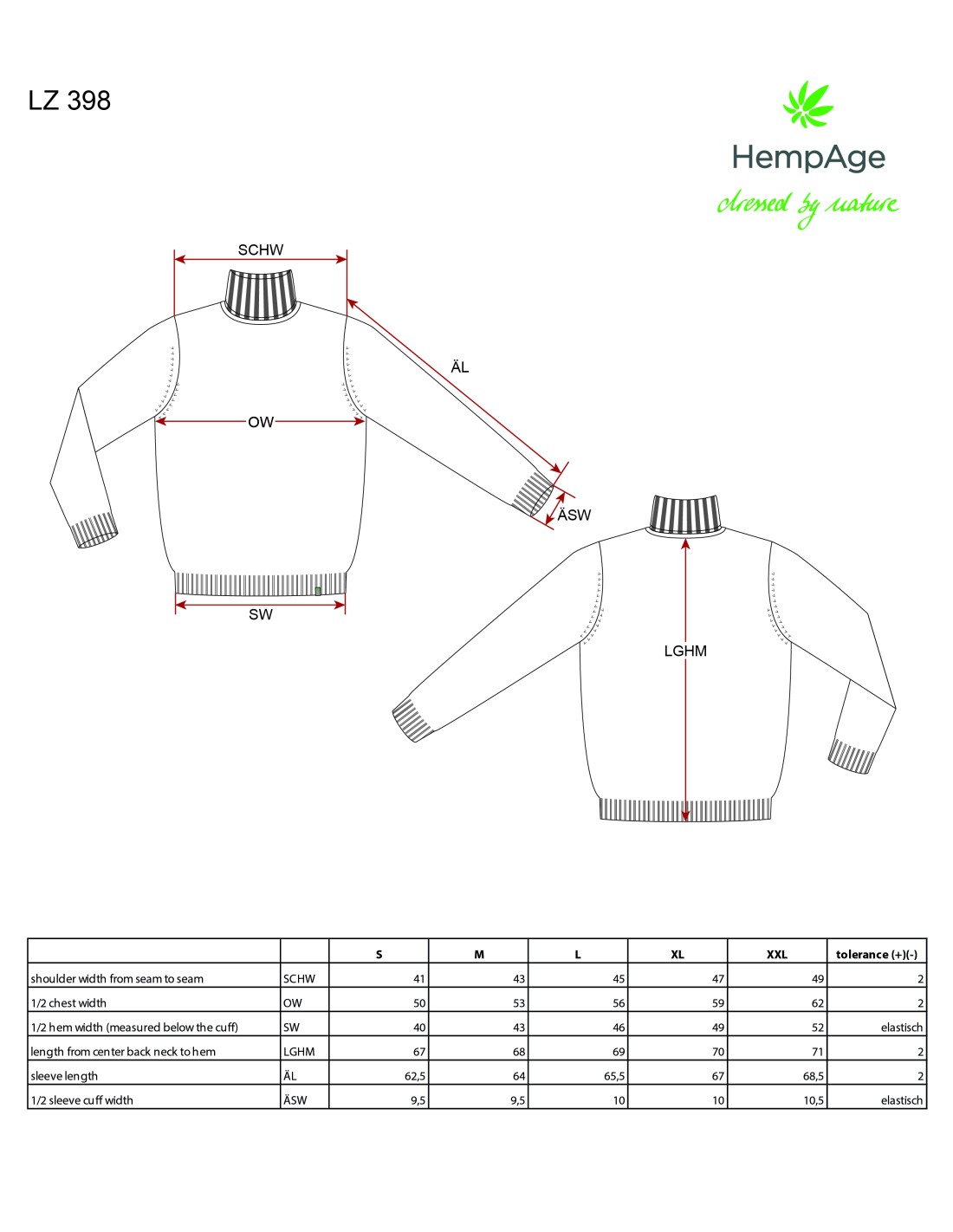 The sweater is a knitted turtleneck composed of hemp and organic cotton, offering a normal cut for optimal comfort. The knitted tissue of this sweater combines the durability of hemp with the softness of organic cotton, creating a comfortable and environmentally friendly garment.