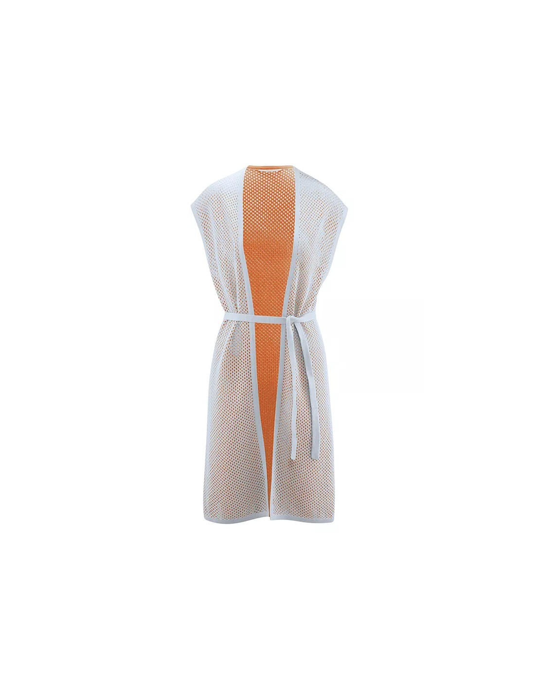 Este chaleco de malla es una prenda versátil y elegante, diseñada para adaptarse a diversas ocasiones gracias a su reversibilidad. Fabricado a partir de una mezcla de algodón orgánico y cáñamo, ofrece una textura suave y agradable al ser respetuosa con el medio ambiente. El ajuste normal garantiza un ajuste cómodo, mientras que la cintura permite enfatizar la silueta con refinamiento.