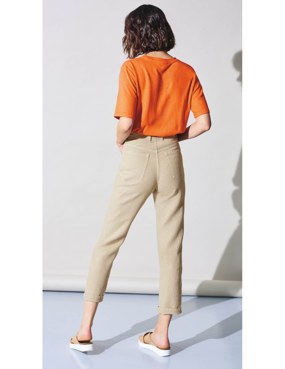 Estos pantalones vaqueros de cintura alta combina elegancia y confort, hechos de cáñamo y algodón orgánico para un toque de sofisticación sostenible. Diseñado con una tela tejida de calidad, coincide perfectamente con la silueta mientras ofrece un corte halagador y cómodo. La cremallera acompañada por un botón de metal sin níquel asegura un acabado conveniente y discreto.