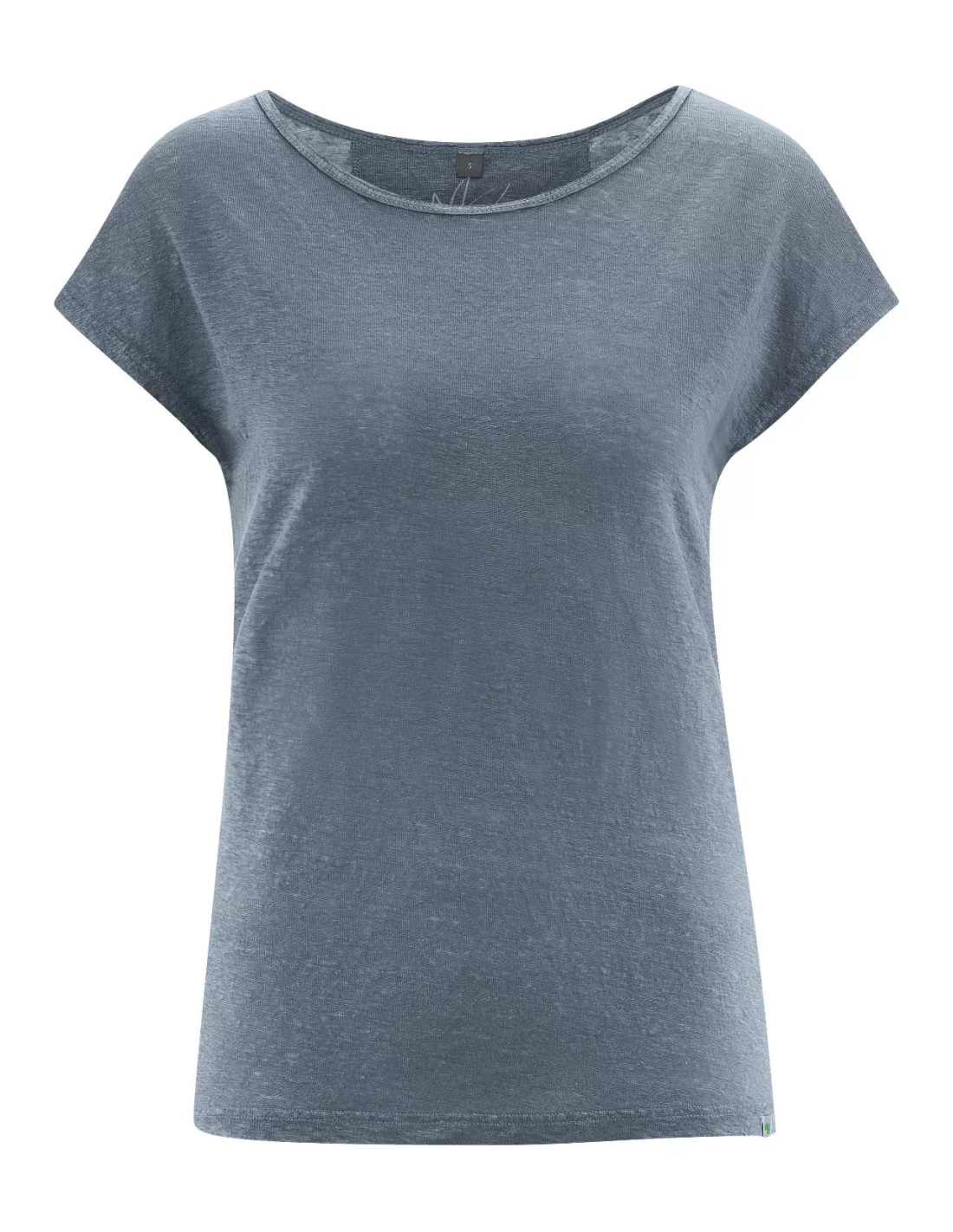 El cuello redondo clásico completa esta verdadera camiseta de cáñamo, ideal para un estilo simple y ecológico.