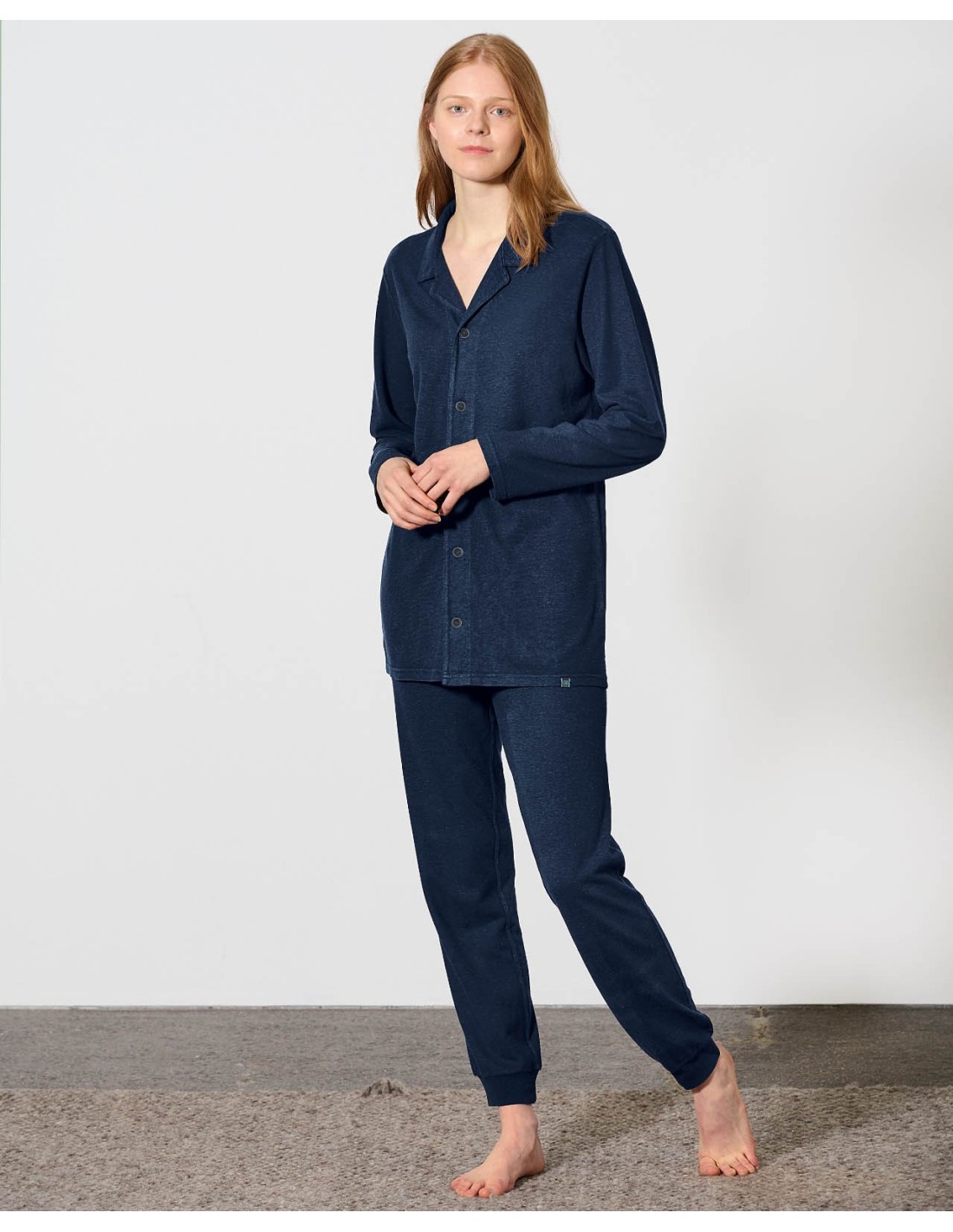 Esta camisa de pijamas combina elegancia y confort con su corte normal y su tejido de jersey cepillado de 200 g / m². Hecho en cáñamo y algodón orgánico, asegura una suave suavidad en la piel.