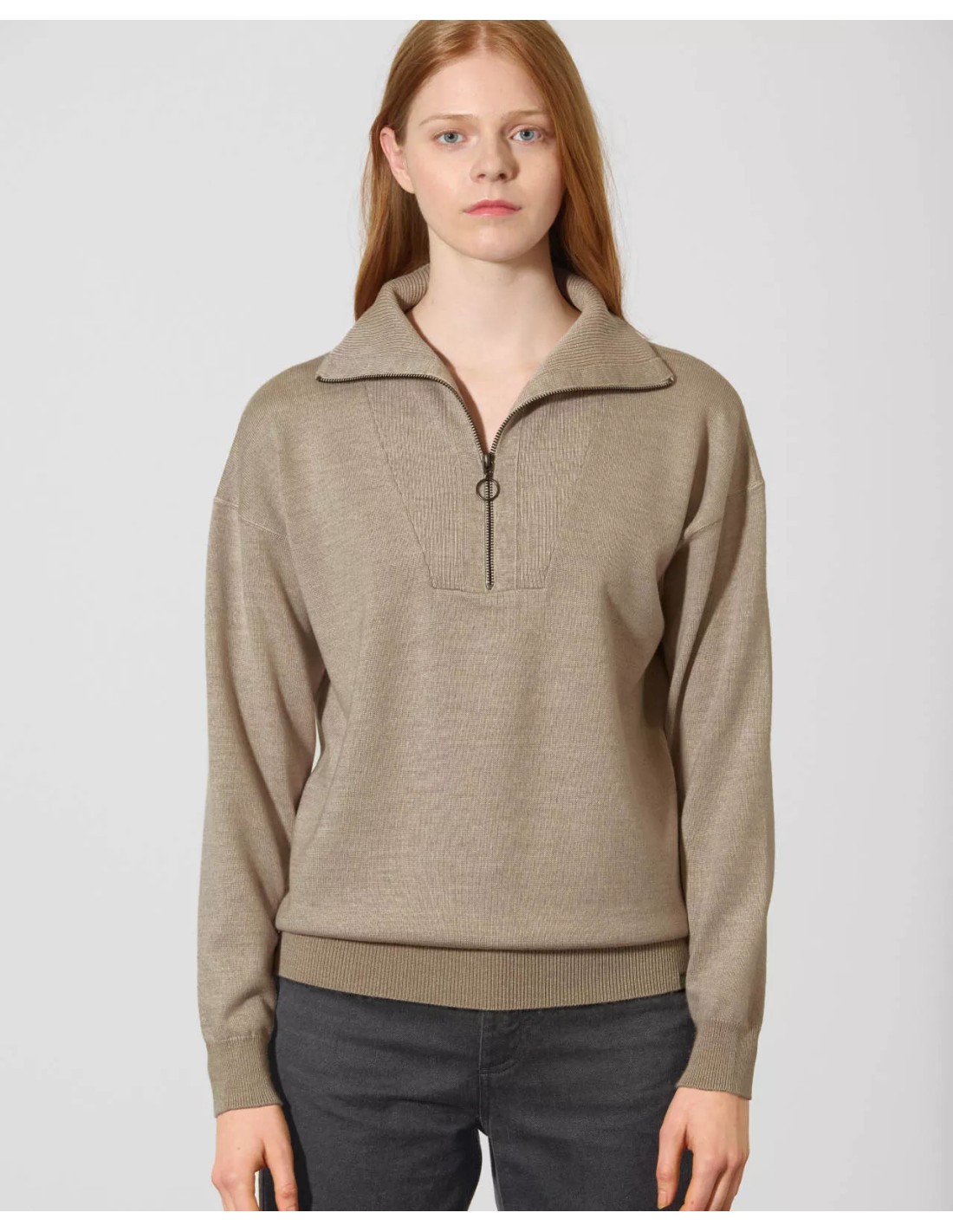 El suéter Troyer es una pieza robusta y elegante, diseñada para ofrecer estilo y confort. Con una cremallera de metal libre de níquel, este modelo tiene un collar ajustable que le permite regular el calor según sus necesidades. Su ajuste normal garantiza una comodidad óptima, mientras que el tejido de 385 gr/m2 de punto ofrece una calidez ideal para días frescos.
