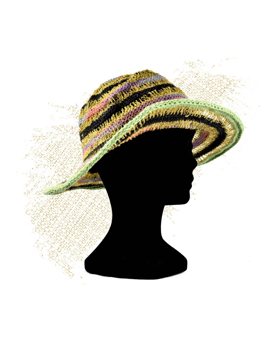Sombrero - 100% de cáñamo nepalés - Amarillo y Verde
