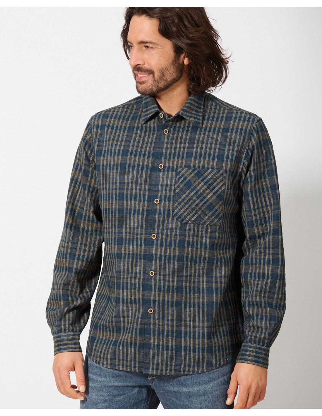 Esta camisa casual tiene un corte suelto que ofrece una sensación de comodidad inmediata. Su tejido de cáñamo y algodón orgánico desarrolla una textura ligera con un alivio sutil, lo que le da al modelo una apariencia auténtica y fácil de usar.