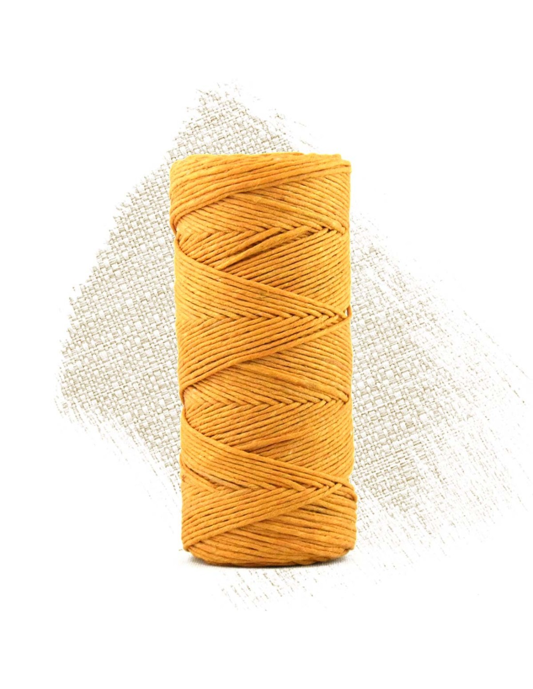 Bobine de 90 mètres de fil pur chanvre non ciré d'un diamètre d’environ 0,8 mm, enroulée sur un tube en carton. Ce fil conserve sa texture naturelle, sans effet ciré ni traitement de surface, pour un toucher brut et authentique.