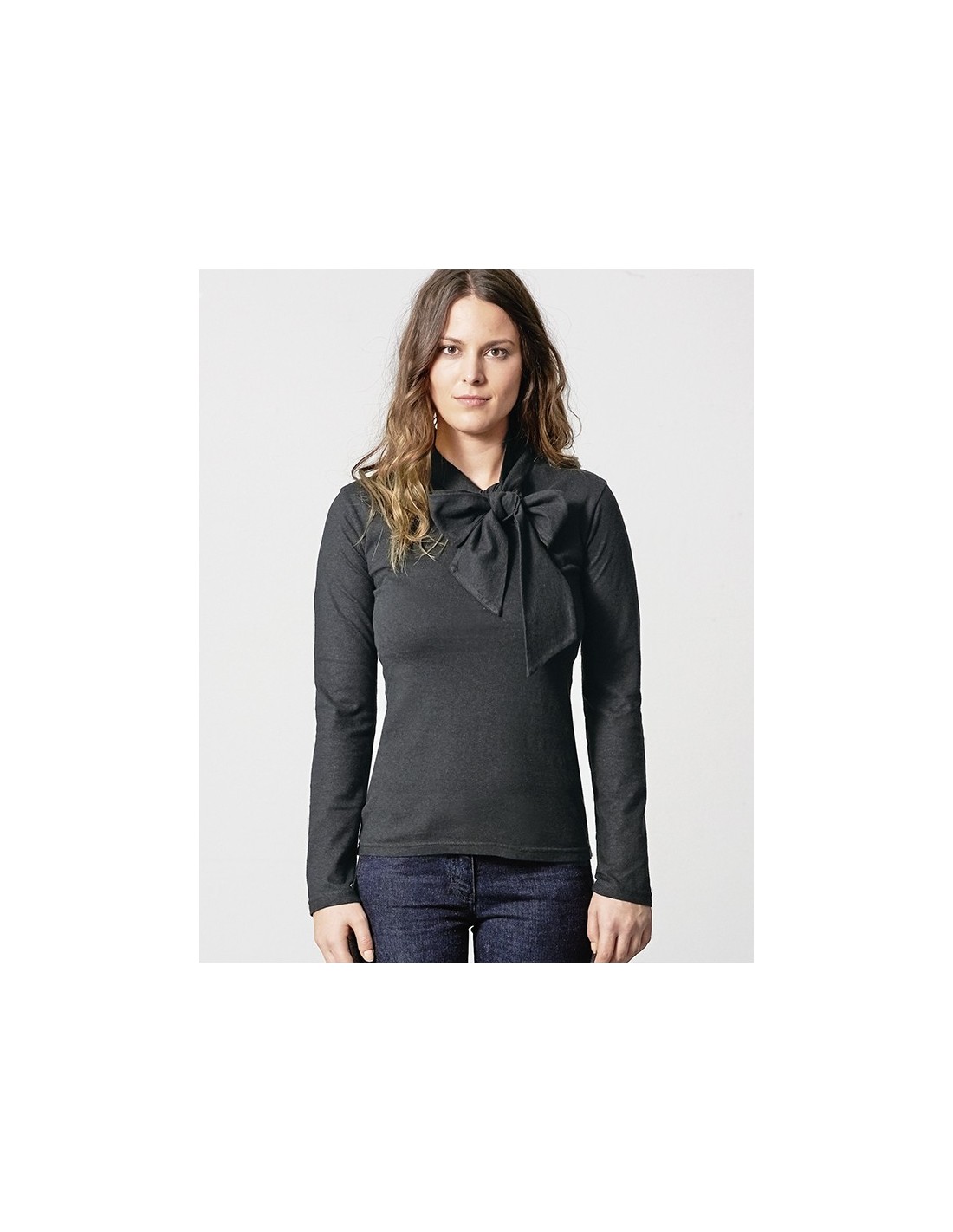 Réalisée en jersey doux, elle se distingue par son col cravate avec une boucle polyvalente, permettant une personnalisation facile du style. Sa matière respirante assure un confort optimal tout au long de la journée, tout en conservant une allure chic et soignée.