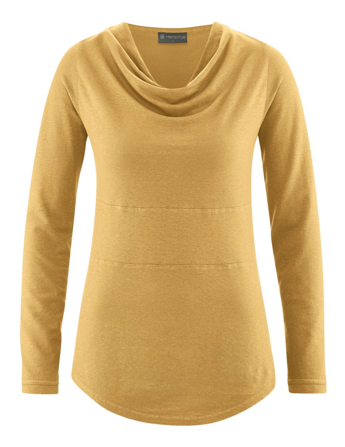 Ce T-shirt à manches longues, signé Hempage, est confectionné dans un mélange de chanvre et de coton biologique. Sa coupe décontractée et son jersey doux garantissent un confort optimal. L'encolure en cascade ajoute une touche de sophistication à la pièce, tandis que la couture arrondie et la couture contrastante à la taille apportent des détails raffinés. Idéal pour un look à la fois moderne et relaxe, ce T-shirt allie style et respect de l'environnement.