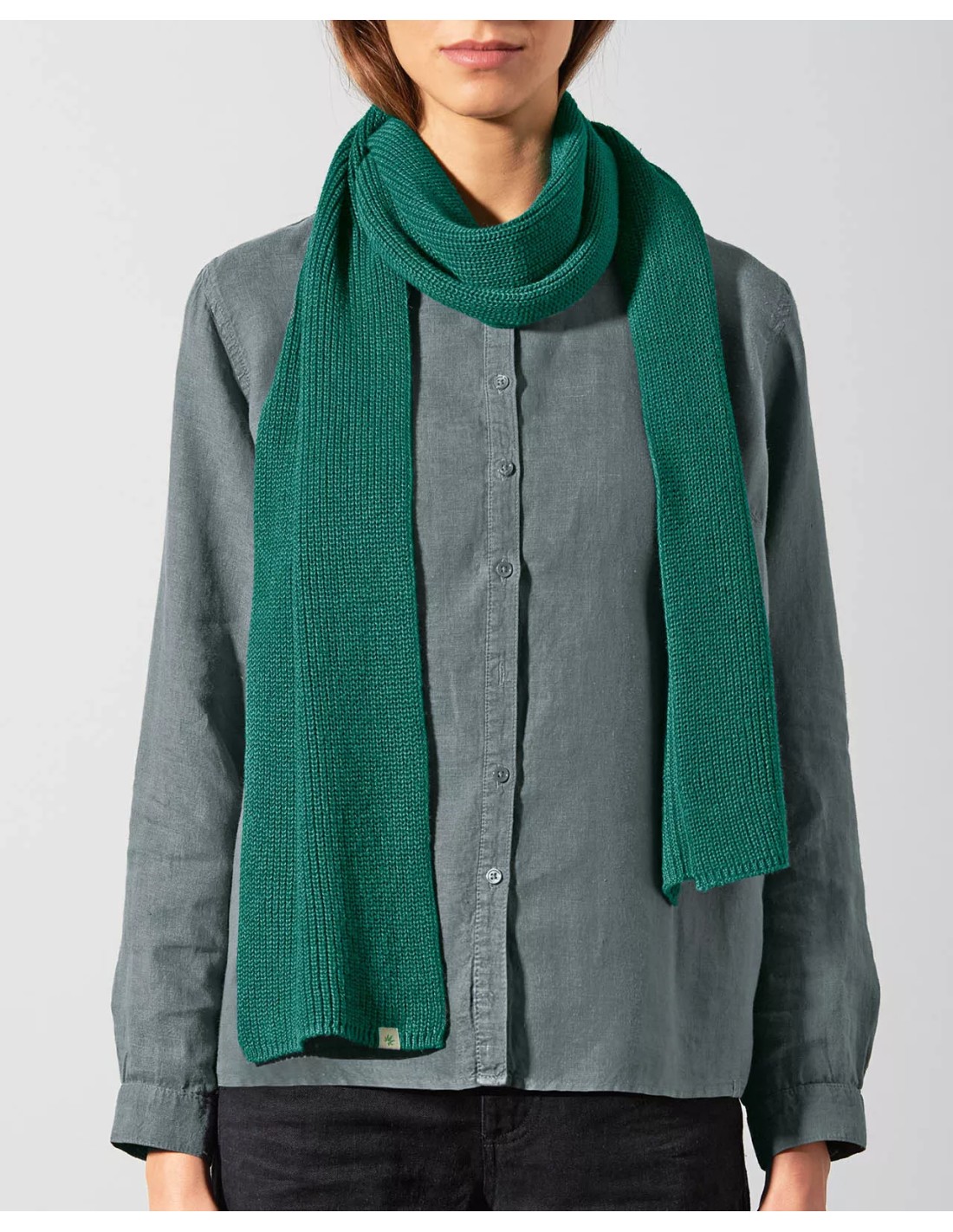 Le mélange de chanvre et de coton biologique assure durabilité et respect de l'environnement, faisant de cette écharpe un accessoire à la fois pratique et éthique.