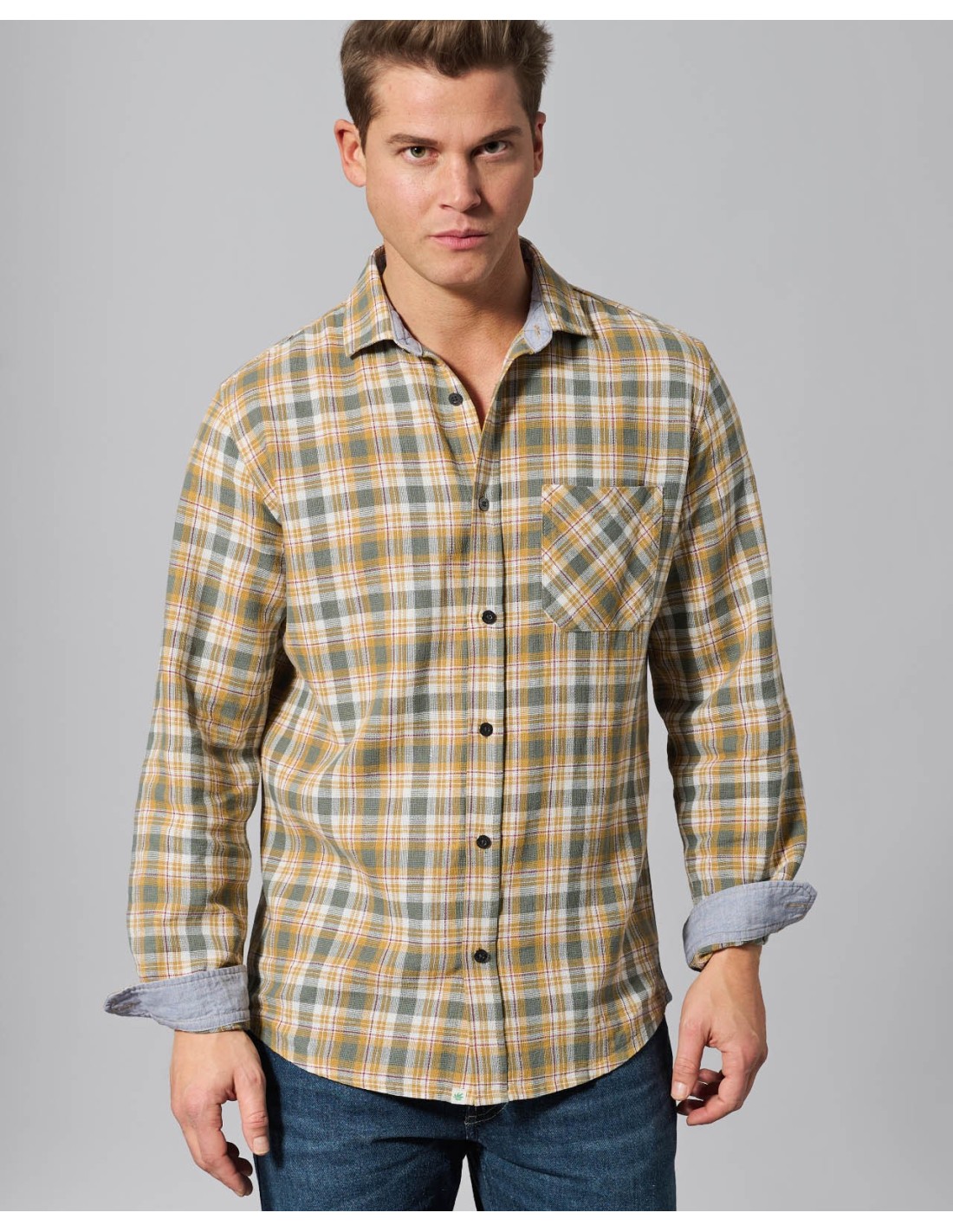 Questa camicia in tessuto logger, realizzata in una miscela di canapa e cotone biologico, offre una vestibilità normale che combina comfort e robustezza. Il tessuto grammatico 180 gr/m2 garantisce durata e calore, perfetto per giornate fresche. Pulsanti in metallo senza nichel, pratici taschino sul petto e cuciture decorative aggiungono dettagli funzionali ed estetici.