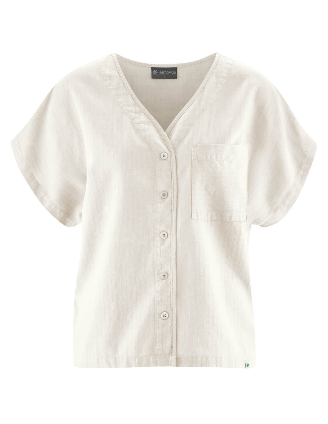 Questa camicetta larga, realizzata in tessuto intrecciato, offre una silhouette casual ideale per uno stile confortevole ed elegante.