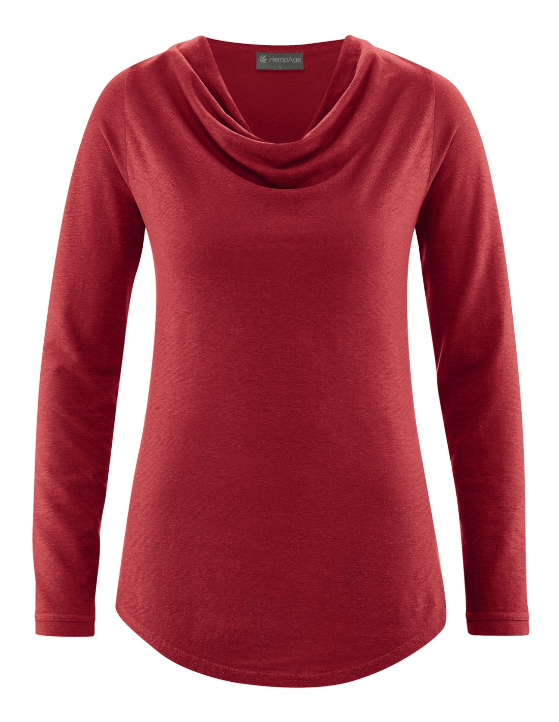 T-shirt a maniche lunghe con colletto a cascata - canapa e cotone organico