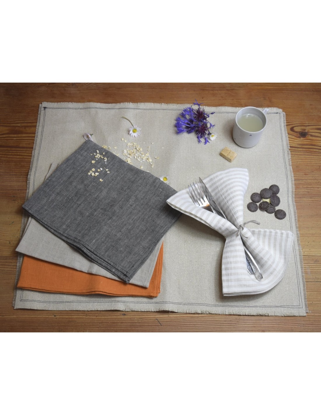 Realizzato a mano in Auvergne, questo tovagliolo da tavolo 100% naturale di canapa incarna eleganza e genuinità al tavolo, sia per le occasioni quotidiane che per grandi.